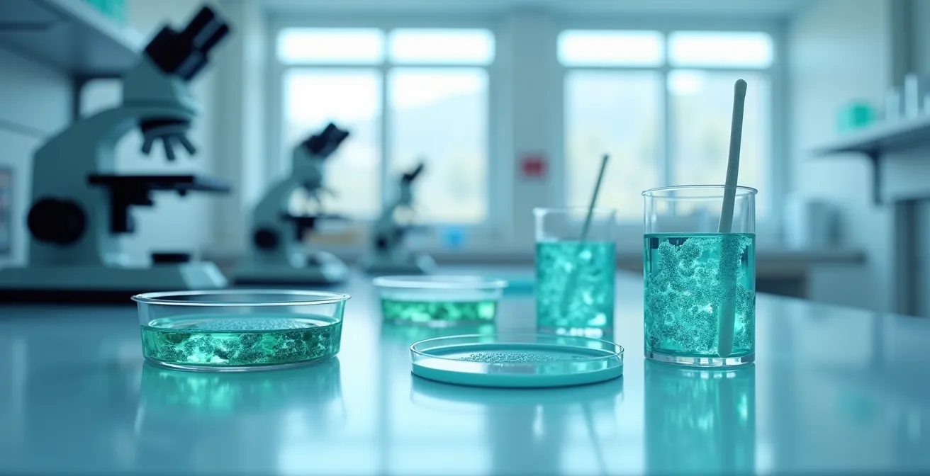 Comme le montre cette image, le biofilm est une réalité microscopique aux conséquences macroscopiques. Le détecter efficacement est crucial. Une lame gélosée, simple et rapide, est parfaite pour les surfaces lisses et planes, mais elle sera inefficace dans les recoins, sur les joints ou les surfaces irrégulières. L’écouvillonnage, bien que plus technique, permet d’aller chercher la contamination dans ces zones difficiles d’accès. Choisir la bonne méthode, ou une combinaison des deux, n’est pas qu’une décision technique ; c’est démontrer que votre démarche qualité va au-delà des apparences et s’attaque aux risques cachés.