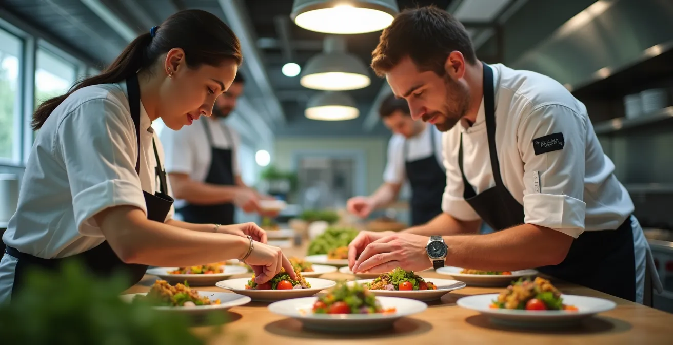 En concevant une carte courte où, par exemple, 2 des 4 plats principaux sont des « caméléons », vous couvrez 100% de la demande potentielle sans multiplier les références en stock. Une pièce de poisson peut être servie avec une purée classique au beurre ou avec une version à l’huile d’olive et herbes fraîches. Un plat de légumes rôtis peut être la garniture d’une viande ou devenir le plat principal avec l’ajout d’une céréale sans gluten et d’une protéine végétale. C’est l’essence même de la cuisine intelligente : faire plus avec moins.
